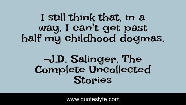 This page presents the quote "I still think that, in a way, I can't get past half my childhood dogmas.". Author of this quote is J.D. Salinger, The Complete Uncollected Stories. This quote is about childhood, psychology,.