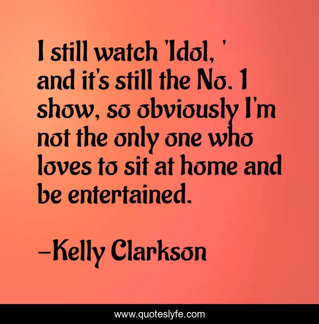 This page presents the quote "I still watch 'Idol, ' and it's still the No. 1 show, so obviously I'm not the only one who loves to sit at home and be entertained.". Author of this quote is Kelly Clarkson. This quote is about show, watch, sit,.