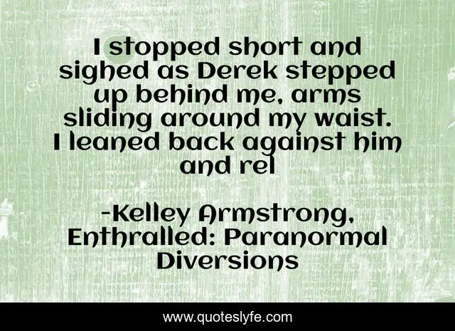 This page presents the quote "I stopped short and sighed as Derek stepped up behind me, arms sliding around my waist. I leaned back against him and rel". Author of this quote is Kelley Armstrong, Enthralled: Paranormal Diversions. This quote is about derek, chloe, listening, order,.