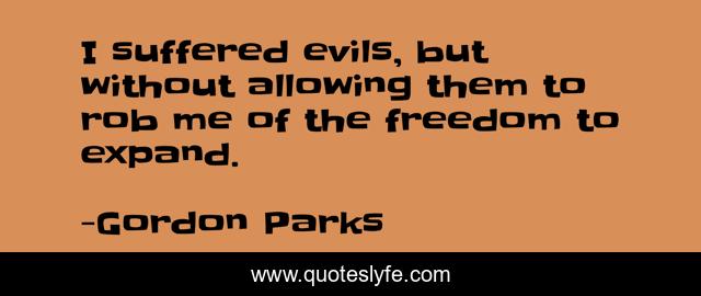 This page presents the quote "I suffered evils, but without allowing them to rob me of the freedom to expand.". Author of this quote is Gordon Parks. This quote is about me, evils, without,.