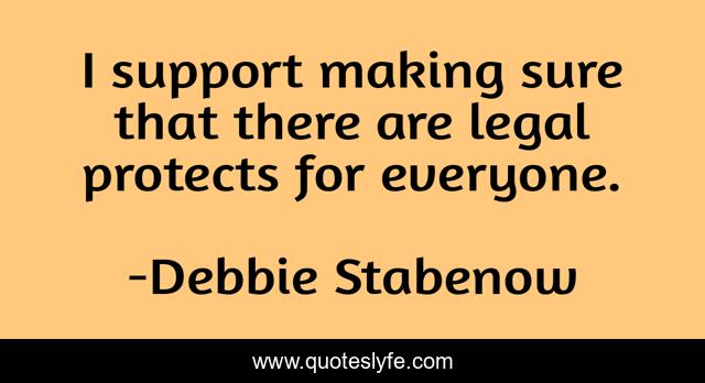 This page presents the quote "I support making sure that there are legal protects for everyone.". Author of this quote is Debbie Stabenow. This quote is about support, everyone, sure,.