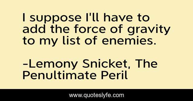 This page presents the quote "I suppose I'll have to add the force of gravity to my list of enemies.". Author of this quote is Lemony Snicket, The Penultimate Peril. .