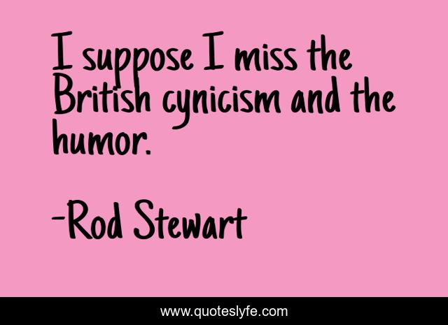This page presents the quote "I suppose I miss the British cynicism and the humor.". Author of this quote is Rod Stewart. This quote is about miss, british, cynicism,.