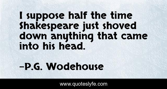 This page presents the quote "I suppose half the time Shakespeare just shoved down anything that came into his head.". Author of this quote is P.G. Wodehouse. This quote is about writers, humor,.