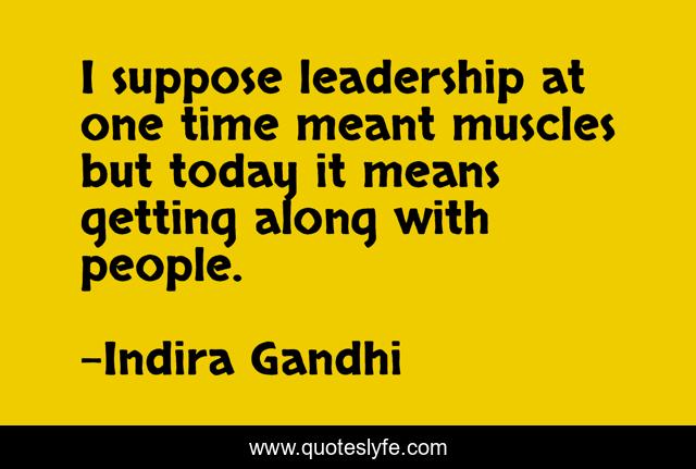 This page presents the quote "I suppose leadership at one time meant muscles but today it means getting along with people.". Author of this quote is Indira Gandhi. This quote is about leadership, leaders,.