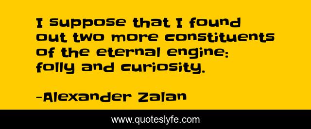 This page presents the quote "I suppose that I found out two more constituents of the eternal engine: folly and curiosity.". Author of this quote is Alexander Zalan. This quote is about sarcasm, satire,.