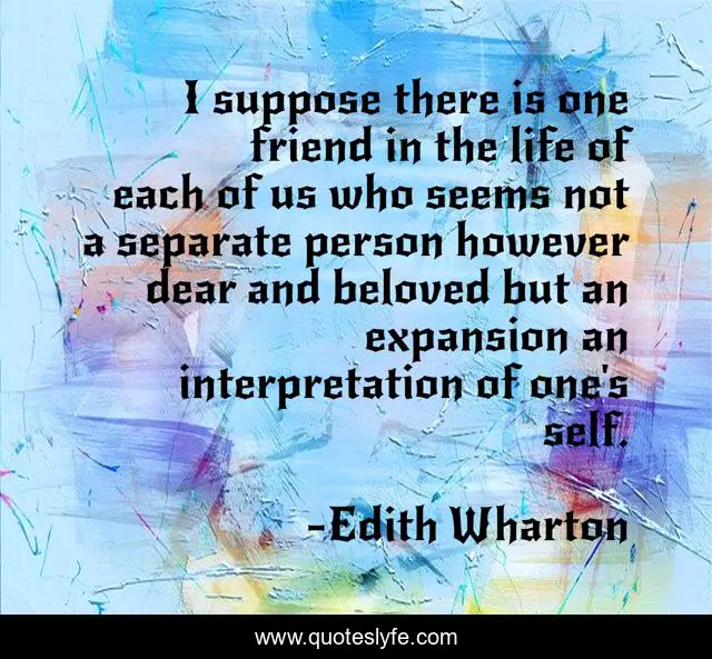 This page presents the quote "I suppose there is one friend in the life of each of us who seems not a separate person however dear and beloved but an expansion an interpretation of one's self.". Author of this quote is Edith Wharton. .