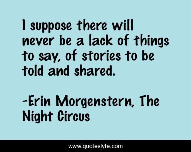 This page presents the quote "I suppose there will never be a lack of things to say, of stories to be told and shared.". Author of this quote is Erin Morgenstern, The Night Circus. .