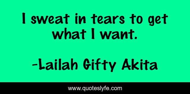 This page presents the quote "I sweat in tears to get what I want.". Author of this quote is Lailah Gifty Akita. This quote is about strong-woman, inspiring, self-confidence, success, hard-work, capable, lailah-gifty-akita, tears, determination,.