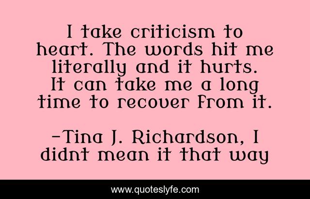 "Tina J. Richardson, I didnt mean it that way Quotes." Quoteslyfe.com, 2025. Fri. 05 Dec. 2025. <https://www.quoteslyfe.com/quote/I-take-criticism-to-heart-The-words-226065>.