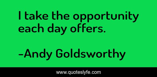 This page presents the quote "I take the opportunity each day offers.". Author of this quote is Andy Goldsworthy. .