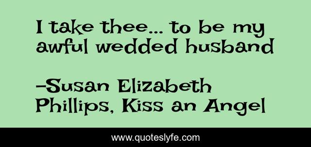 This page presents the quote "I take thee... to be my awful wedded husband". Author of this quote is Susan Elizabeth Phillips, Kiss an Angel. This quote is about marriage, wedding,.
