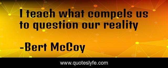 This page presents the quote "I teach what compels us to question our reality". Author of this quote is Bert McCoy. This quote is about best-teacher-practices, mindfulness, presence, questioning, peace-of-mind, important-questions, what-to-teach, teaching, reality,.