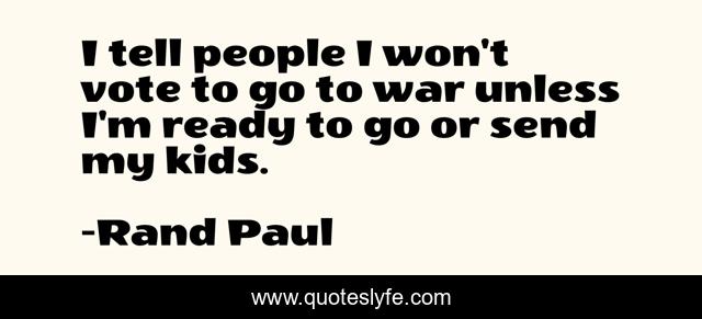 This page presents the quote "I tell people I won't vote to go to war unless I'm ready to go or send my kids.". Author of this quote is Rand Paul. This quote is about vote, kids, people,.