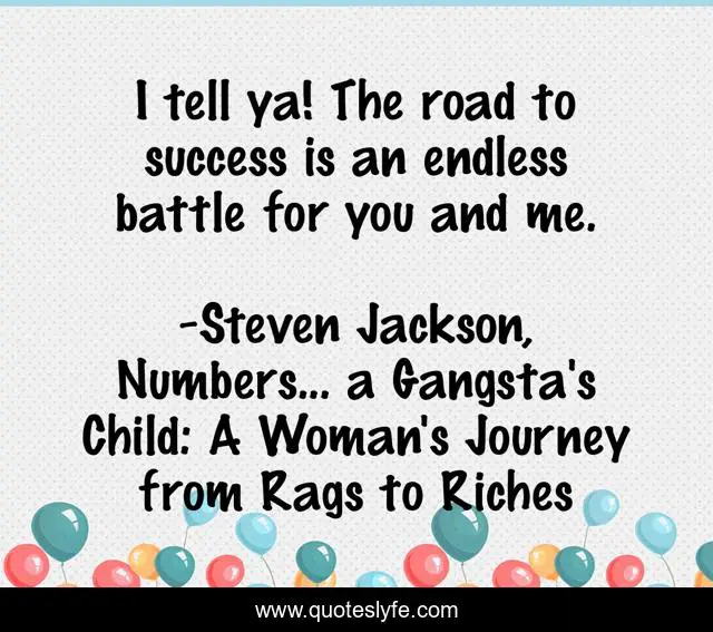 "Steven Jackson, Numbers... a Gangsta's Child: A Woman's Journey from Rags to Riches Quotes." Quoteslyfe.com, 2025. Tue. 09 Dec. 2025. <https://www.quoteslyfe.com/quote/I-tell-ya-The-road-to-success-137494>.