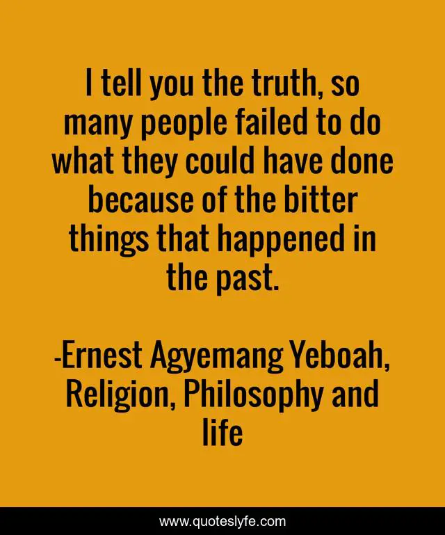 This page presents the quote "I tell you the truth, so many people failed to do what they could have done because of the bitter things that happened in the past.". Author of this quote is Ernest Agyemang Yeboah, Religion, Philosophy and life. This quote is about a-new-start, be-positive-in-life, the-past-is-gone-forever, failure, think-well,.
