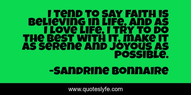This page presents the quote "I tend to say faith is believing in life, and as I love life, I try to do the best with it, make it as serene and joyous as possible.". Author of this quote is Sandrine Bonnaire. This quote is about life, love, best, affection,.