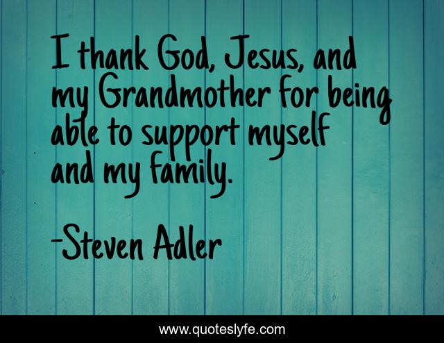 This page presents the quote "I thank God, Jesus, and my Grandmother for being able to support myself and my family.". Author of this quote is Steven Adler. This quote is about god, myself, support,.