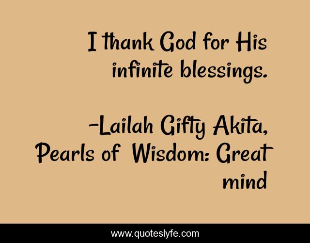 "Lailah Gifty Akita, Pearls of Wisdom: Great mind Quotes." Quoteslyfe.com, 2025. Sat. 06 Dec. 2025. <https://www.quoteslyfe.com/quote/I-thank-God-for-His-infinite-blessings-85437>.