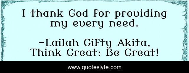 "Lailah Gifty Akita, Think Great: Be Great! Quotes." Quoteslyfe.com, 2025. Fri. 05 Dec. 2025. <https://www.quoteslyfe.com/quote/I-thank-God-for-providing-my-every-169131>.
