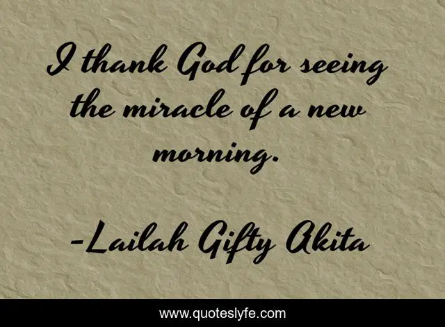 This page presents the quote "I thank God for seeing the miracle of a new morning.". Author of this quote is Lailah Gifty Akita. This quote is about thank-god, inspiring, lailah-gifty-akita-affirmations, morning, daily-life, new-morning,.