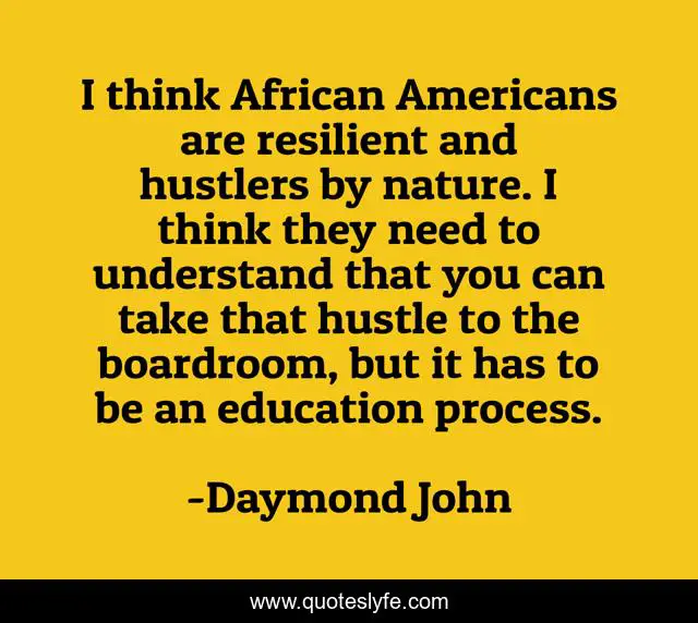 This page presents the quote "I think African Americans are resilient and hustlers by nature. I think they need to understand that you can take that hustle to the boardroom, but it has to be an education process.". Author of this quote is Daymond John. This quote is about education, think, hustle,.
