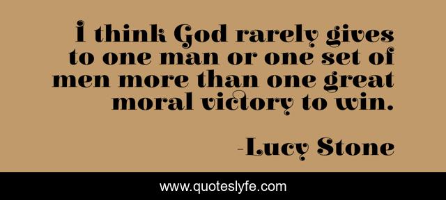 This page presents the quote "I think God rarely gives to one man or one set of men more than one great moral victory to win.". Author of this quote is Lucy Stone. .