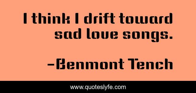 This page presents the quote "I think I drift toward sad love songs.". Author of this quote is Benmont Tench. This quote is about i think, love, think, affection,.