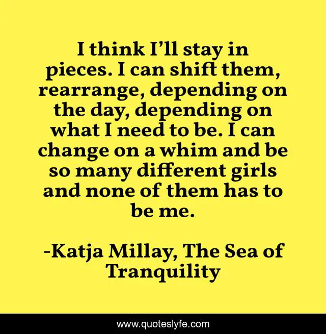 "Katja Millay, The Sea of Tranquility Quotes." Quoteslyfe.com, 2025. Fri. 05 Dec. 2025. <https://www.quoteslyfe.com/quote/I-think-I-ll-stay-in-pieces-171261>.