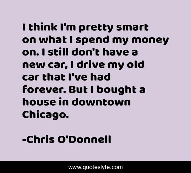 This page presents the quote "I think I'm pretty smart on what I spend my money on. I still don't have a new car, I drive my old car that I've had forever. But I bought a house in downtown Chicago.". Author of this quote is Chris O'Donnell. This quote is about car, think, smart,.