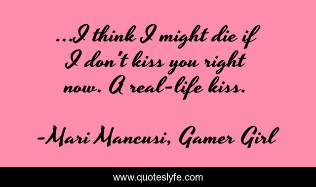 This page presents the quote "...I think I might die if I don't kiss you right now. A real-life kiss.". Author of this quote is Mari Mancusi, Gamer Girl. This quote is about cute, love, chad, gamer-girl, maddy, romance, kissing, mari-mancusi, affection,.