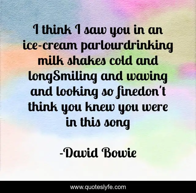 This page presents the quote "I think I saw you in an ice-cream parlourdrinking milk shakes cold and longSmiling and waving and looking so finedon't think you knew you were in this song". Author of this quote is David Bowie. This quote is about music, lyrics, memory,.