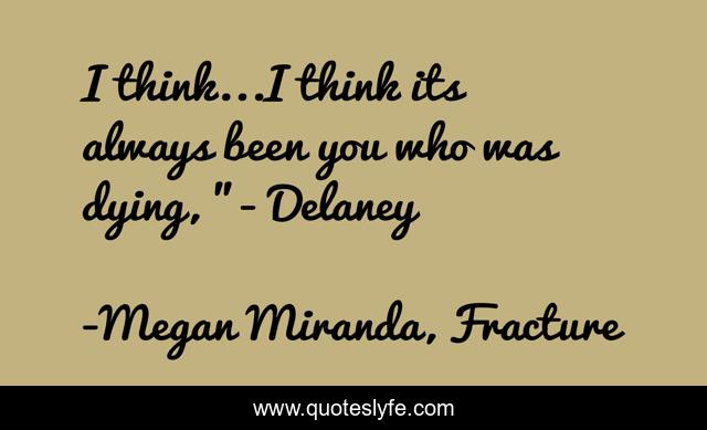 This page presents the quote "I think...I think its always been you who was dying, "- Delaney". Author of this quote is Megan Miranda, Fracture. .