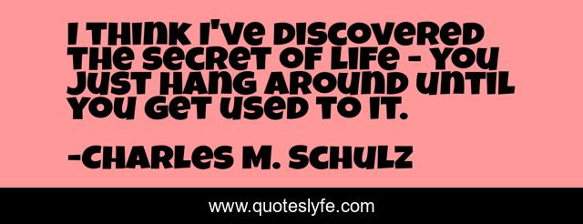 This page presents the quote "I think I've discovered the secret of life - you just hang around until you get used to it.". Author of this quote is Charles M. Schulz. This quote is about secret, think,.