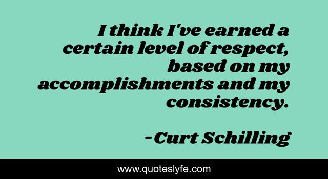 This page presents the quote "I think I've earned a certain level of respect, based on my accomplishments and my consistency.". Author of this quote is Curt Schilling. This quote is about i think, think, consistency,.