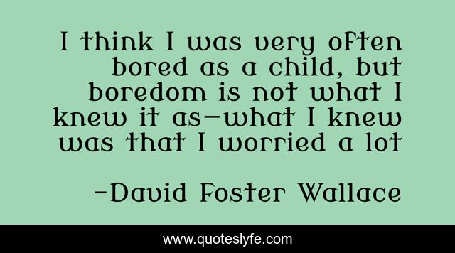 This page presents the quote "I think I was very often bored as a child, but boredom is not what I knew it as—what I knew was that I worried a lot". Author of this quote is David Foster Wallace. .