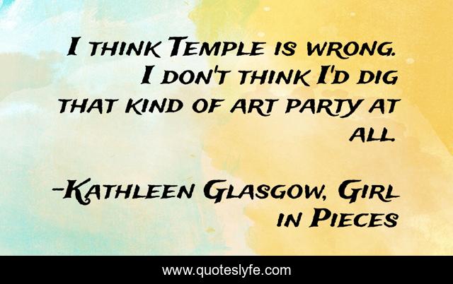 This page presents the quote "I think Temple is wrong. I don't think I'd dig that kind of art party at all.". Author of this quote is Kathleen Glasgow, Girl in Pieces. This quote is about party, art, the-day-of-the-dead,.