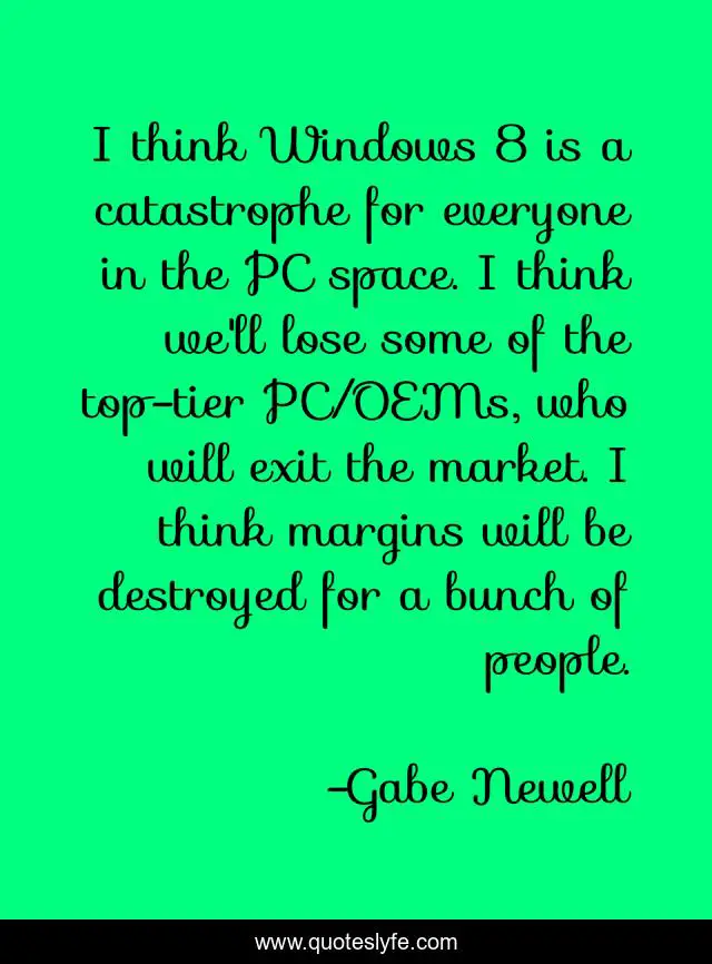 "Gabe Newell Quotes." Quoteslyfe.com, 2025. Fri. 05 Dec. 2025. <https://www.quoteslyfe.com/quote/I-think-Windows-8-is-a-catastrophe-289664>.