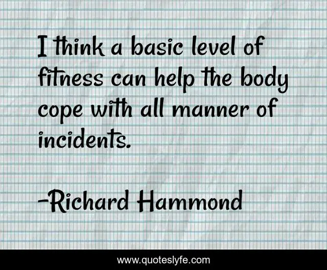 This page presents the quote "I think a basic level of fitness can help the body cope with all manner of incidents.". Author of this quote is Richard Hammond. This quote is about body, help, think,.