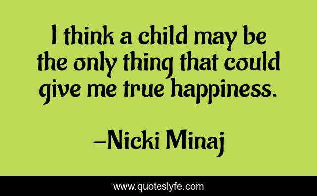 This page presents the quote "I think a child may be the only thing that could give me true happiness.". Author of this quote is Nicki Minaj. This quote is about me, think, child,.