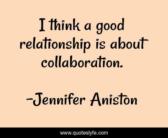 This page presents the quote "I think a good relationship is about collaboration.". Author of this quote is Jennifer Aniston. This quote is about collaboration, good, think,.
