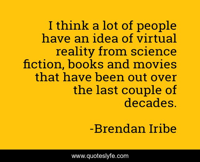 This page presents the quote "I think a lot of people have an idea of virtual reality from science fiction, books and movies that have been out over the last couple of decades.". Author of this quote is Brendan Iribe. This quote is about reality, think, people,.