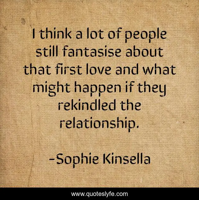 This page presents the quote "I think a lot of people still fantasise about that first love and what might happen if they rekindled the relationship.". Author of this quote is Sophie Kinsella. This quote is about love, think, affection, people,.