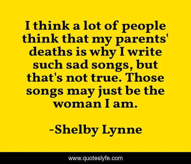 This page presents the quote "I think a lot of people think that my parents' deaths is why I write such sad songs, but that's not true. Those songs may just be the woman I am.". Author of this quote is Shelby Lynne. This quote is about woman, parents,.