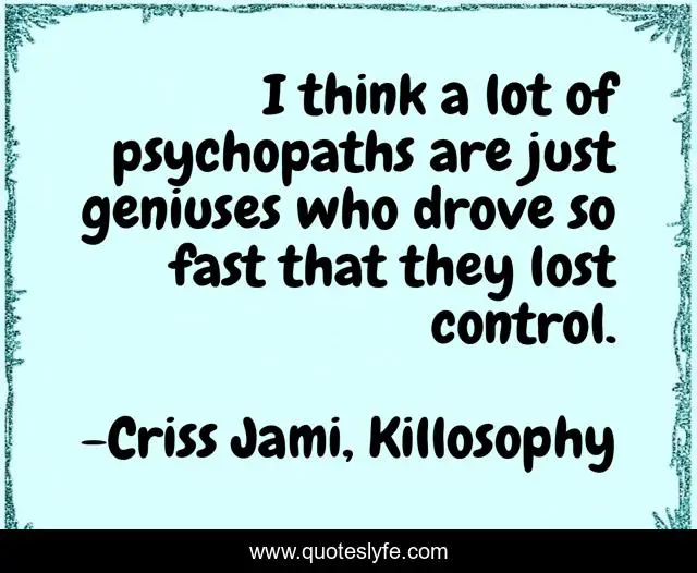 "Criss Jami, Killosophy Quotes." Quoteslyfe.com, 2025. Mon. 08 Dec. 2025. <https://www.quoteslyfe.com/quote/I-think-a-lot-of-psychopaths-are-30477>.