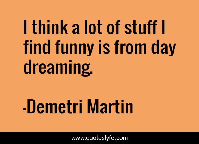 This page presents the quote "I think a lot of stuff I find funny is from day dreaming.". Author of this quote is Demetri Martin. This quote is about think, find, day,.