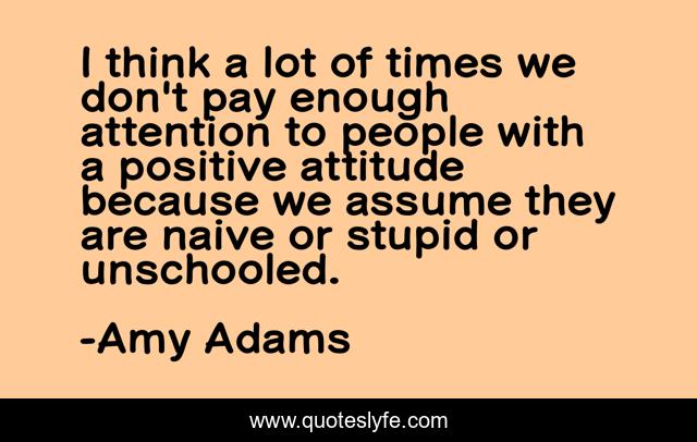 This page presents the quote "I think a lot of times we don't pay enough attention to people with a positive attitude because we assume they are naive or stupid or unschooled.". Author of this quote is Amy Adams. This quote is about positive, confidence, stupid,.