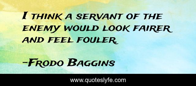 This page presents the quote "I think a servant of the enemy would look fairer and feel fouler.". Author of this quote is Frodo Baggins. This quote is about lord-of-the-rings, fantasy, lotr,.