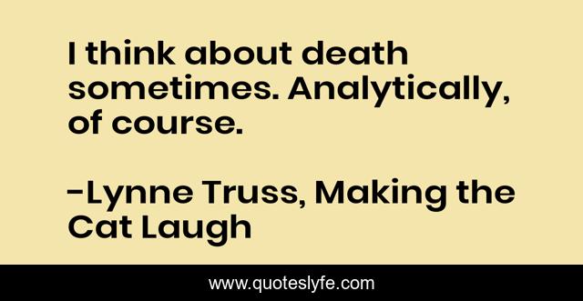 "Lynne Truss, Making the Cat Laugh Quotes." Quoteslyfe.com, 2025. Fri. 05 Dec. 2025. <https://www.quoteslyfe.com/quote/I-think-about-death-sometimes-Analytically-of-21895>.