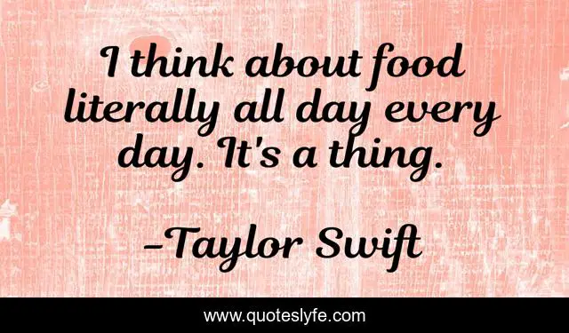 "Taylor Swift Quotes." Quoteslyfe.com, 2025. Sat. 06 Dec. 2025. <https://www.quoteslyfe.com/quote/I-think-about-food-literally-all-day-300936>.